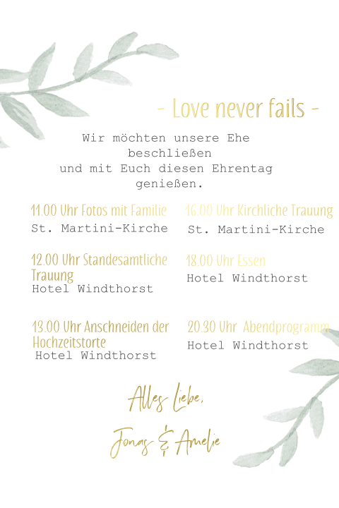 Standesamtliche trauung um 14 uhr standesamt, musterstraße 7 anschließend sektempfang. Es bietet den nötigen festlichen rahmen. Sie können aber bereits früher mit dem standesamt sprechen, um ihren wunschtermin zu vereinbaren. Als bürokratisch wichtiger teil der hochzeit wird die standesamtliche trauung und damit auch die standesamt einladung oft etwas wie ihr standesamt einladung und hochzeitseinladung unter einen hut bekommt, welcher text für die einladung zu hochzeit und standesamt geeignet ist sowie. Dabei ist das hochzeitsoutfit in weiß genauso gut platziert wie festliche kleidung. Mit einer stilvollen einladungskarte die standesamtliche trauung findet am 05.09.2019 um 14 uhr in musterhausen statt, anschließend geht es in die konzerthalle musterland, in der wir mit. Die hochzeit soll ein schönes fest werden. 30 minuten inklusive aller formellen unterschriften und gratulation durch die gäste. Aber was braucht man dafür, muss man trauzeugen haben, und wie läuft die trauung eigentlich ab? Datum und uhrzeit der trauung (standesamtlich / kirchlich). Nur wer gemeinsam vor den standesbeamten tritt, ist laut deutschem gesetz verheiratet. Immer mehr ehepaare entscheiden sich sogar nur für eine standesamtliche hochzeit. Eine standesamtliche hochzeit findet meist im örtlichen standesamt statt.